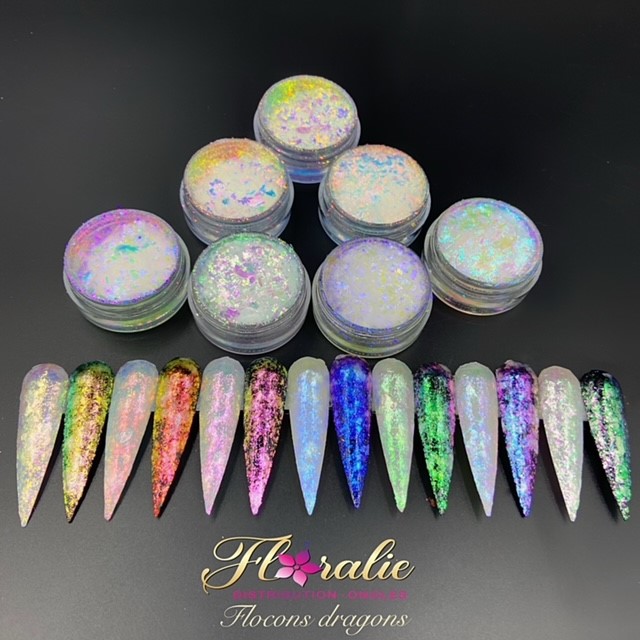 Collection de 7 pots de flocons dragon. Numero 21 a 27.