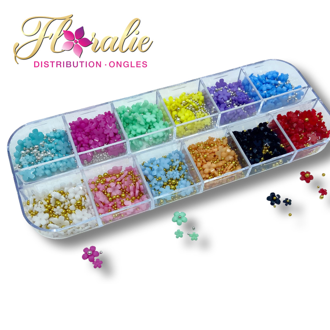 Décos fleurs caviars 12 couleurs différentes.