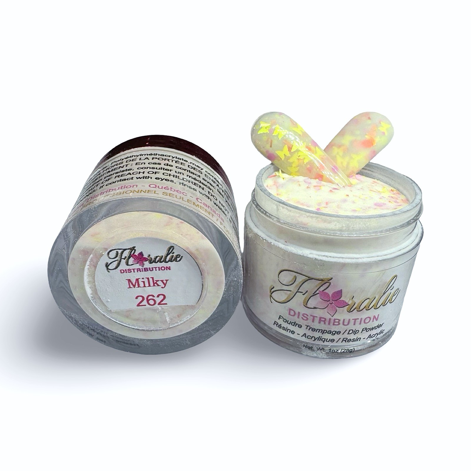 Les poudres Floralie sont conçus pour la résine mais sont également compatible avec l’acrylique et le gel et poudre.