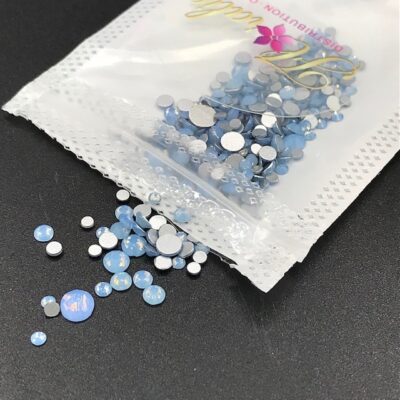 Bijoux pour ongles de couleur bleu opale.